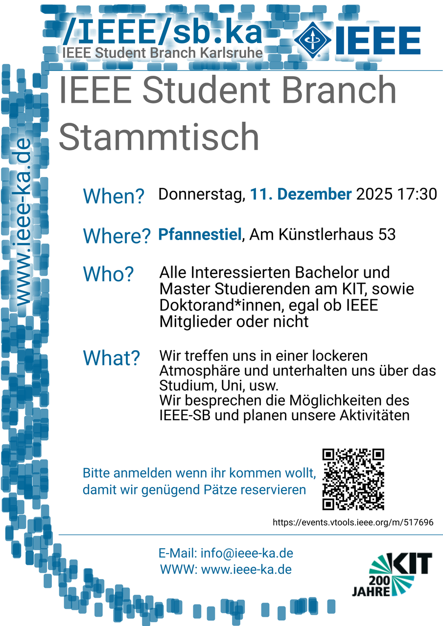 Join us on December 11th, 2025 at Pfannestiel starting at 17:30. We welcome all students, researches and IEEE Members.